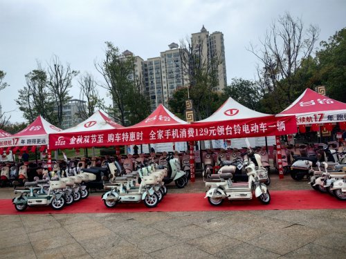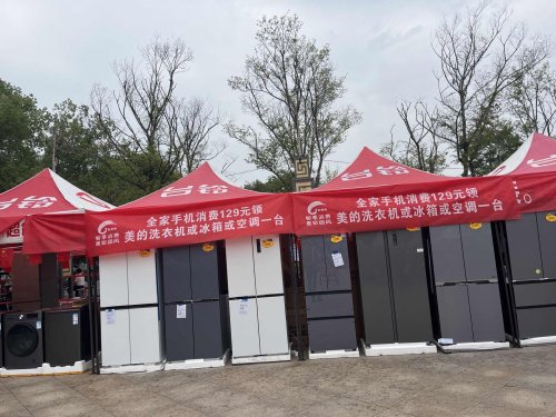活动现场,红色的“台铃”品牌帐篷阵列与团风联通的品牌元素交相辉映。帐篷下,美的洗衣机、冰箱等家电产品与台铃电动车分区陈列,从家庭电器到出行工具的多元布局,构建起一站式消费场景。