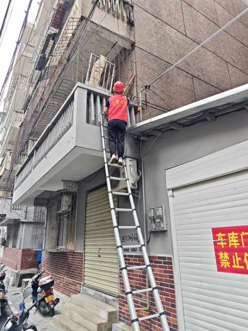 在爬满爬山虎、檐角垂着干枯丝瓜藤的村落里,梯子依旧是智家工程师最可靠的伙伴。每次作业前,张林勇都会先拂去梯面上的落叶,再认真执行 “梯子三查”:指尖划过防滑胶垫确认无磨损,弯腰检查限位销是否牢牢锁死,双手握住横档轻轻晃动,确保稳固无松动。“秋天风多,梯脚得扎稳了才放心。” 他边说边将梯脚往泥土里按了按。老宅砖墙脆,不能随意打孔,他就顺着檐下挂着的玉米串间隙走线,生怕碰掉老人晾晒的收成;遇到绕村的小溪,便用村民闲置的竹架搭起临时通道,避免网线沾到溪水;听见院角的鸡叫,还会顺手帮老人把散落在梯边的稻谷扫回竹筐里。这些带着烟火气的小细节,配上专业的熔纤技术,成了山区独有的通信服务方案。